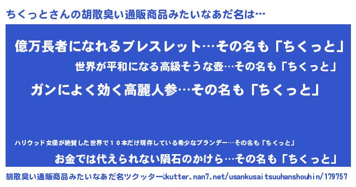 | 意味不明あだ名 | 『自称ちくっと』『ペロリンちくっと』 |