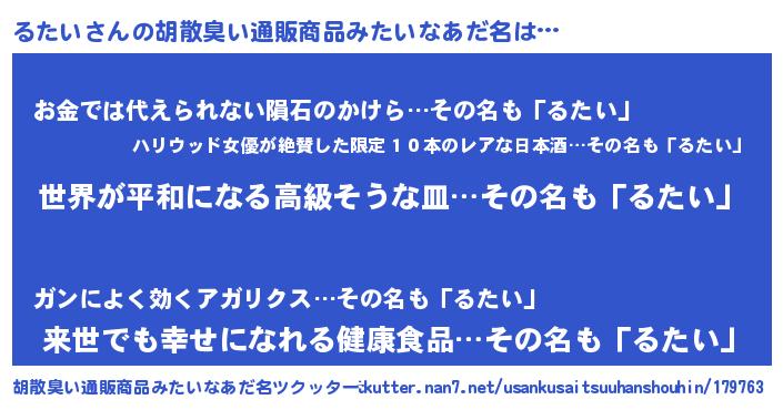 | 意味不明あだ名 | 『るたいフォーエバー』『永久保存るたい』 |