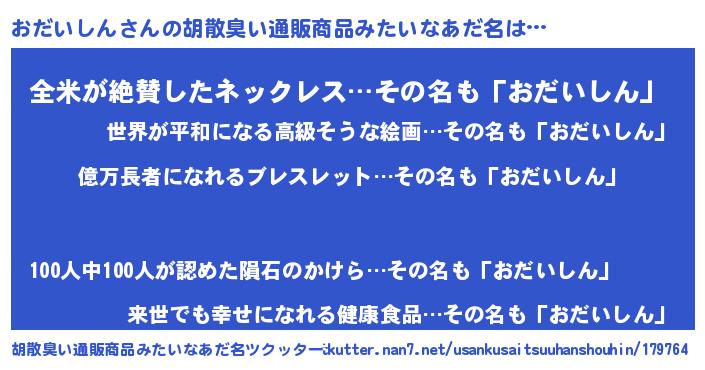 | 意味不明あだ名 | 『ペロリンおだいしん』 |