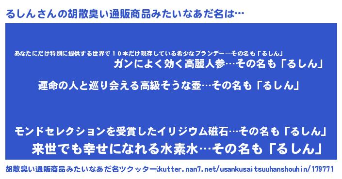 | 意味不明あだ名 | 『るしんフォーエバー』『永久保存るしん』 |