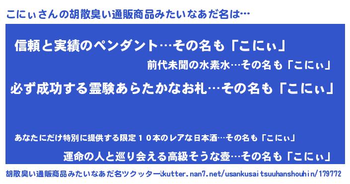 こにぃさんの胡散臭い通販商品みたいなあだ名をツクッター!