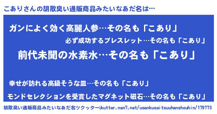| 意味不明あだ名 | 『永久保存こあり』『自称こあり』 |
