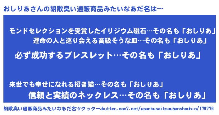 | 男性向けラノベタイトル風あだ名 | 『おしりあの憂鬱』 |