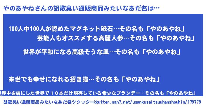 | ヘコむあだ名 | 『なまこ酢』『やのあやね(爆)』 |