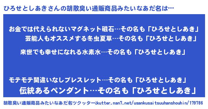 | ヘコむあだ名 | 『ひろせとしあき(苦笑)』『ひろっ子』 |