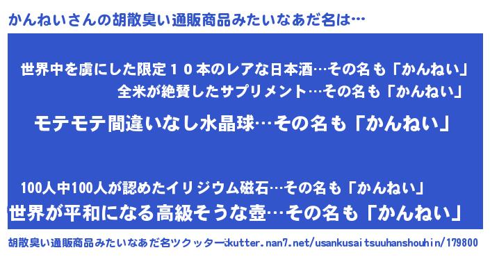 | ヘコむあだ名 | 『かんにゅー』『なまこ酢』 |