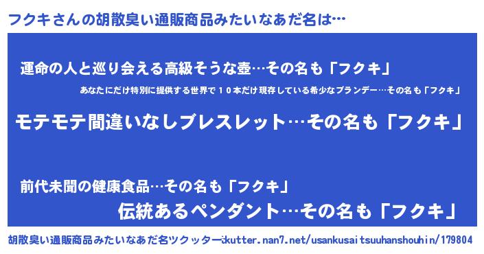 | ピコ太郎風あだ名 | 『フコ次郎』『ピフ史郎』『フク二郎』 |