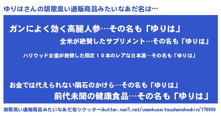 | 意味不明あだ名 | 『住所不定無職ゆりは(47歳)』『自称ゆりは』 |
