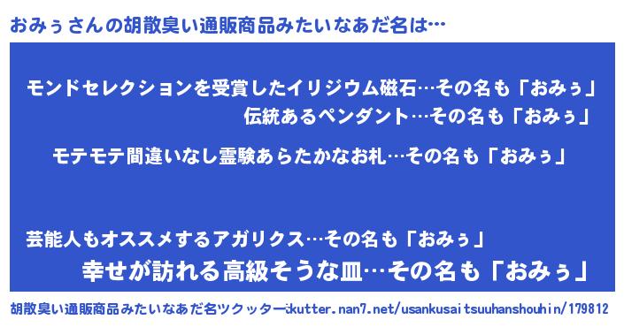 | ヒーロー風カッコイイあだ名 | 『スーパーオミゥ』『天空の使者おみぅ』 |