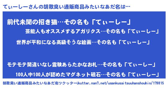 | 欧米人風あだ名 | 『てぃーしークリステル』 |