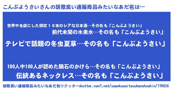 | ヘコむあだ名 | 『こんっちょ』『こんぶようさい(笑)』 |