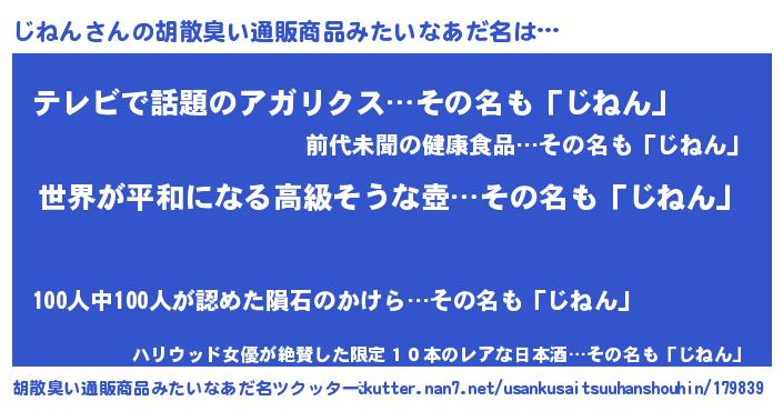 | ヘコむあだ名 | 『なまこ酢』『じねん(爆)』 |