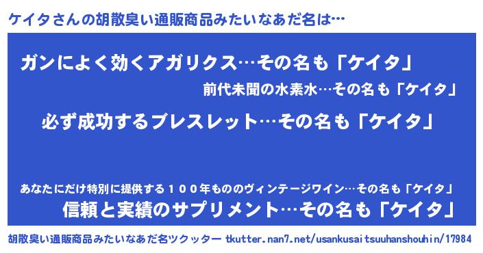 | 意味不明あだ名 | 『ペロリンケイタ』『自称ケイタ』 |