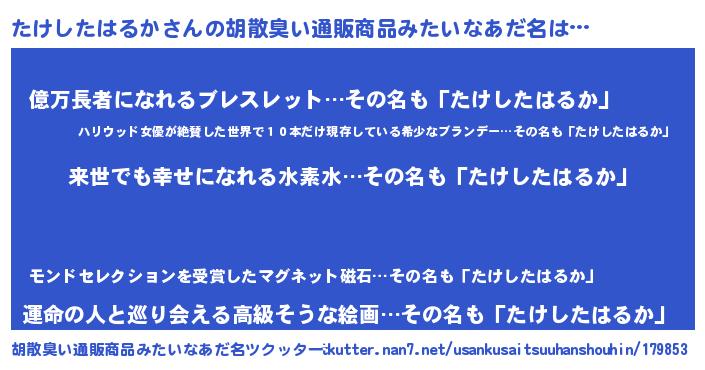 | 意味不明あだ名 | 『永久保存たけしたはるか』 |
