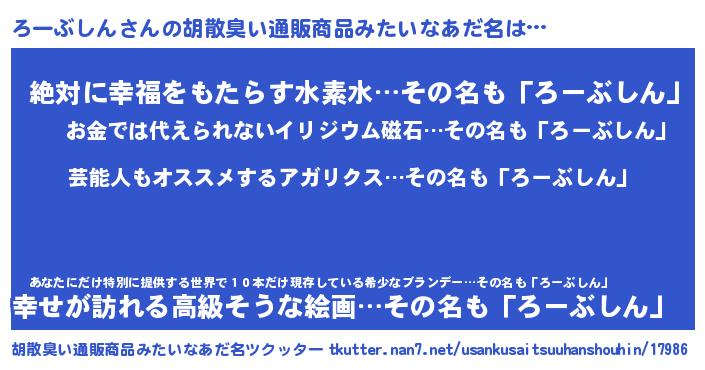 | 意味不明あだ名 | 『自称ろーぶしん』『永久保存ろーぶしん』 |