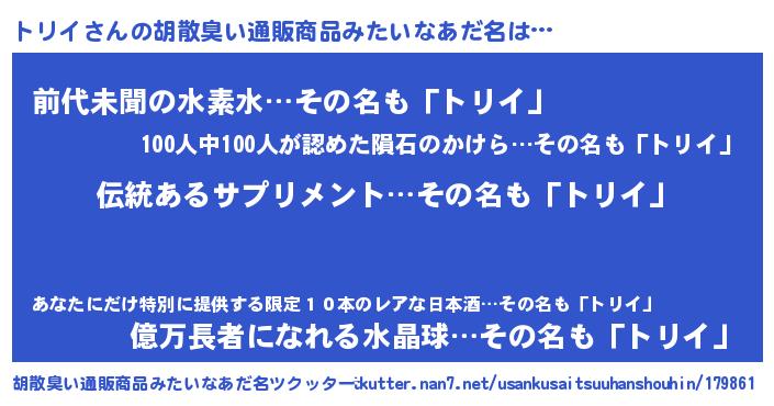 | 意味不明あだ名 | 『とにかく怪しいトリイ』 |