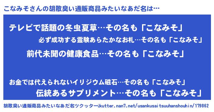 | 意味不明あだ名 | 『ニラ科こなみそ属』『永久保存こなみそ』 |