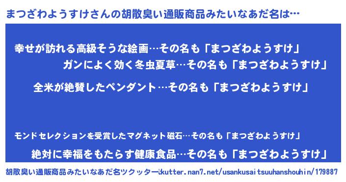 | 男性向けラノベタイトル風あだ名 | 『まつざわようすけの嫁は女の子じゃないと思った?』 |
