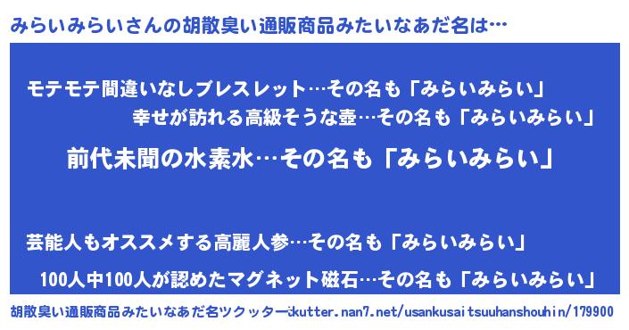 | ヘコむあだ名 | 『みらいみらい(震え声)』『みらにゅー』 |