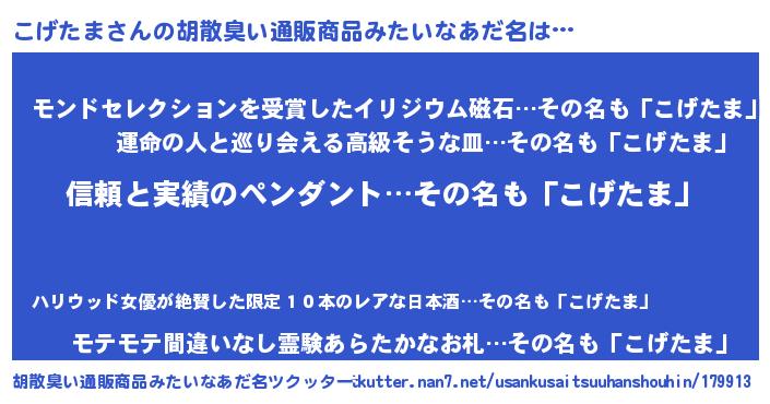 | 意味不明あだ名 | 『とにかく怪しいこげたま』 |