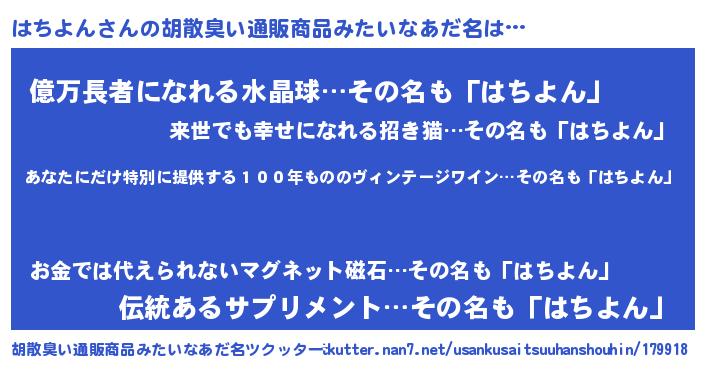 | 意味不明あだ名 | 『住所不定無職はちよん(10歳)』 |