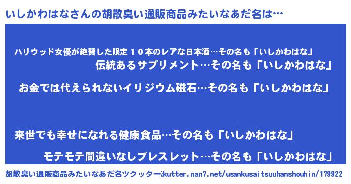 | 男性向けラノベタイトル風あだ名 | 『おまえをオタクにしてやるから、俺をいしかわはなにしてくれ! 』 |