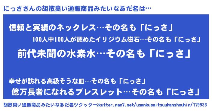| ポケモン風あだ名 | 『ゼニニッ』『ヒニッサ』『ニッゴンZ』 |