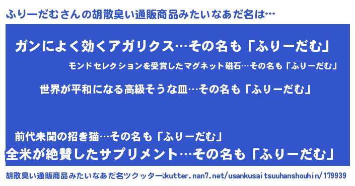 | 肩書あだ名 | 『ふりーだむ国家主席』『ふりーだむ閣下』 |