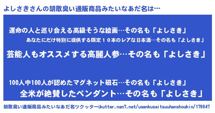 | ファンタジー風あだ名 | 『ゼヨシトゥ』『エターナルヨシサキー』 |
