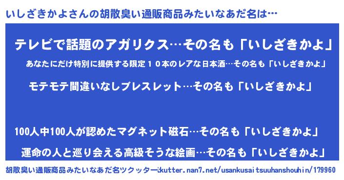 | ヒーロー風カッコイイあだ名 | 『スーパーイシザキカヨ』『仮面イシダー』 |