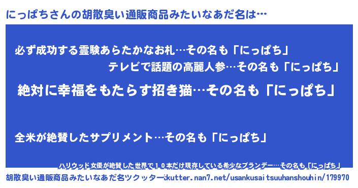 | ヘコむあだ名 | 『にっぱち(笑)』『にっっふぃ~』 |