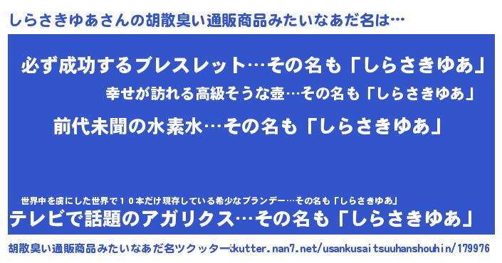 | ヘコむあだ名 | 『しらさきゆあ(苦笑)』『しらふぇ~』 |