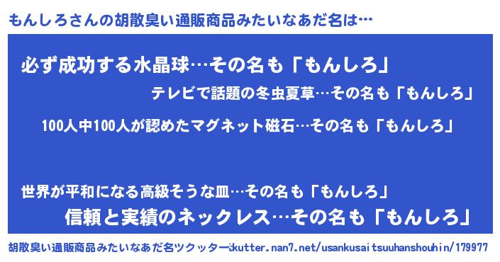 | 欧米人風あだ名 | 『ダニエルもんしろ』『マイケルもんしろ』 |