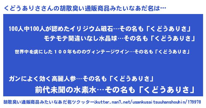 | ヘコむあだ名 | 『くどうありさ(小並感)』『くどっふぃ~』 |