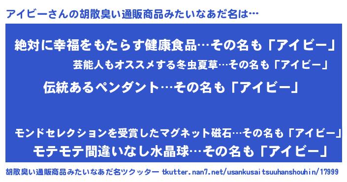 | ヘコむあだ名 | 『アイぷりん』『アイビー(笑)』 |