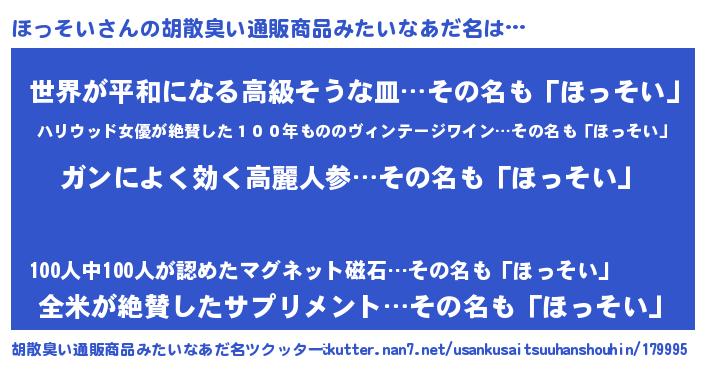 | 意味不明あだ名 | 『自称ほっそい』『ほっそいフォーエバー』 |
