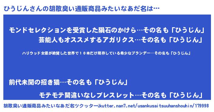 | ヒーロー風カッコイイあだ名 | 『仮面ヒウダー』『慈愛の使者ひうじん』 |