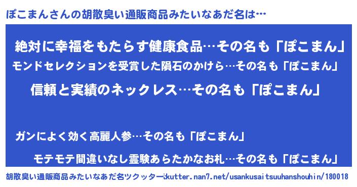 | 意味不明あだ名 | 『とにかく怪しいぽこまん』 |