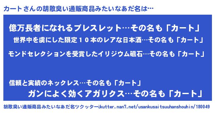 | 女子向けラノベタイトル風あだ名 | 『死神カートの再婚』『闇のカート』 |