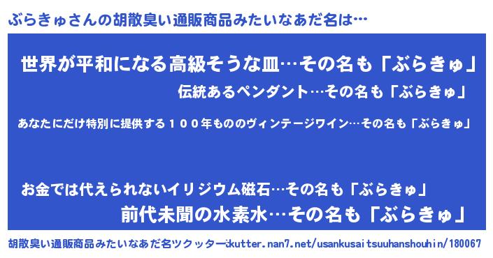 | 意味不明あだ名 | 『住所不定無職ぶらきゅ(12歳)』 |