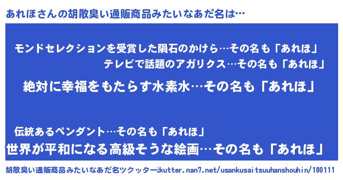 | 男性向けラノベタイトル風あだ名 | 『あれほという概念が存在しない退屈な世界 』 |
