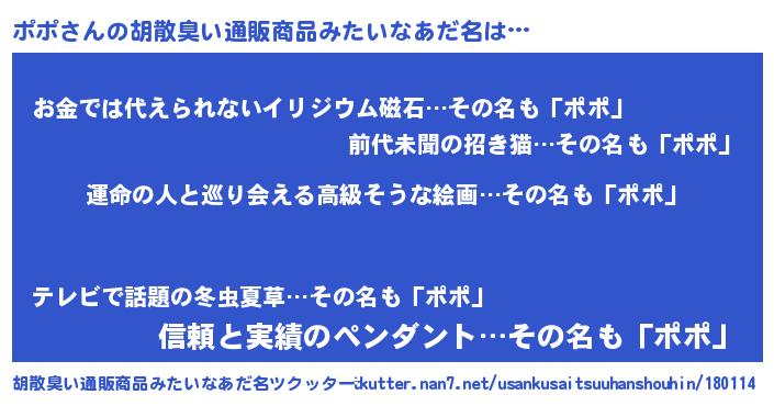 | ポケモン風あだ名 | 『ポポダネ』『ポックウザ』『ヒポポ』 |