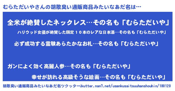 | 伝説のあだ名 | 『伝説のスナイパーむらただいや』 |