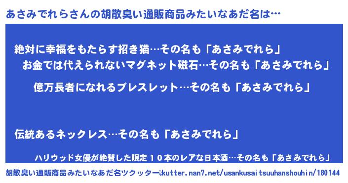 | 意味不明あだ名 | 『ヨモギ科あさみでれら属』 |