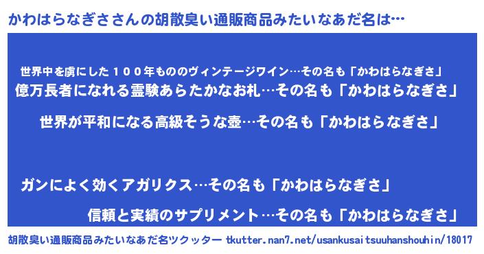 | 意味不明あだ名 | 『かわはらなぎさフォーエバー』 |