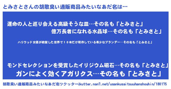 | 意味不明あだ名 | 『住所不定無職とみさと(91歳)』 |