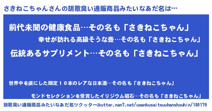 | 意味不明あだ名 | 『とにかく怪しいさきねこちゃん』 |