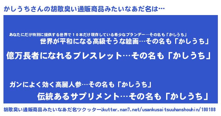 | 肩書あだ名 | 『かしうちCEO』『かしうち教官』 |