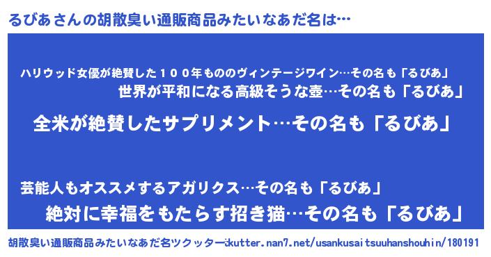 | ヘコむあだ名 | 『るびお』『るびあ(小並感)』 |