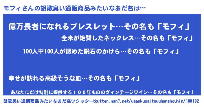 モフィさんの胡散臭い通販商品みたいなあだ名をツクッター!
